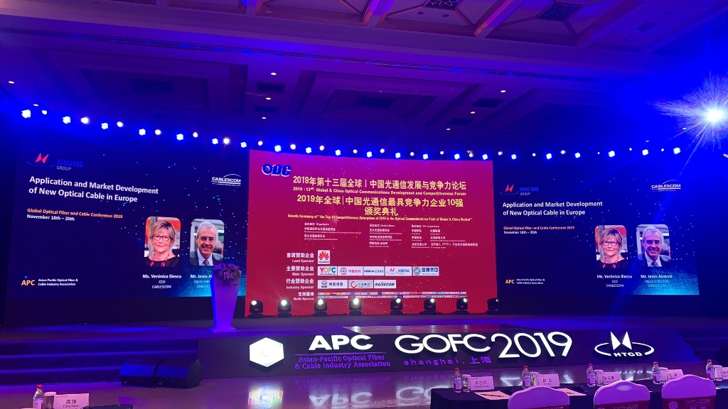 On November 18-20, Hengtong Group and Asian-Pacific Optical Fiber and Cable Industry Association (APC) jointly held Global Optical Fiber and Cable Conference 2019 (GOFC)  in Shanghai International Conference Center and showed four business sectors of Smart City, Smart Ocean, Emerging industry and International industry. More than 600 industry experts and leaders attended the meeting.