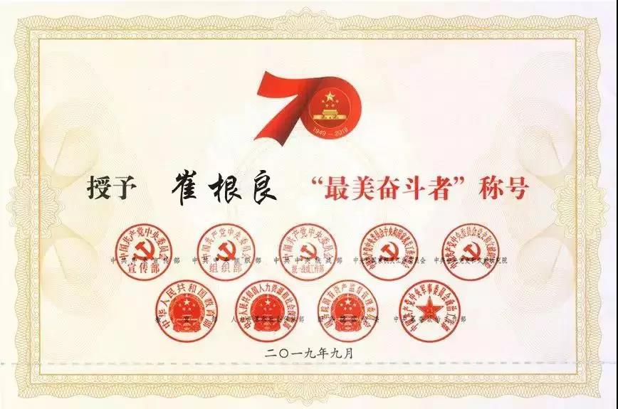 Cui Genliang, founder and chairman of China’s cable giant Hengtong Group, was awarded the title of Role Models of Dedication in recognition of his outstanding contribution to China’s economic and social progress. The awarding ceremony was held at the Great Hall of the People in Beijing, capital of China, Sept. 25, 2019.