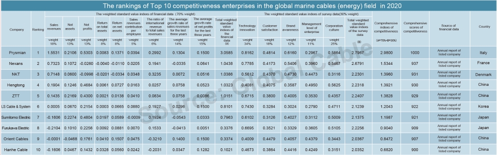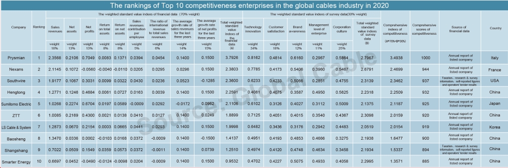 • World’s No.4 competitiveness enterprises in cables industry