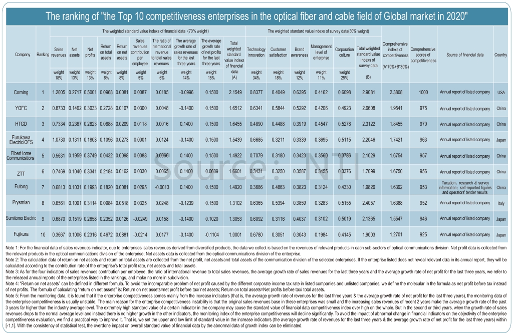 • World’s No.3 competitiveness optical fiber and cable enterprises